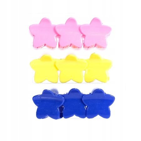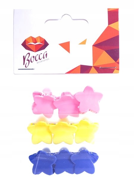 Barvite lasne sponke BOCCA z motivom zvezde za pritrjevanje las v treh barvah (po 3: rumena, roza in modra).