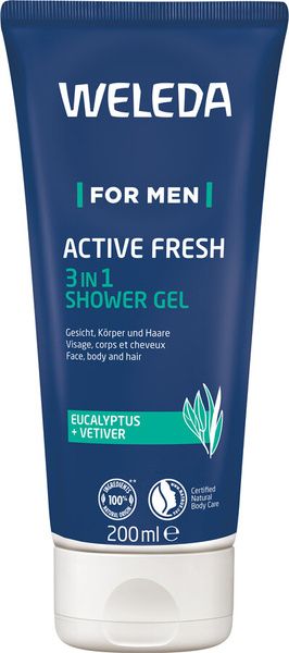 shumee WELEDA 3-v-1 ACTIVE FRESH gel za prhanje za moške z evkaliptom in vetiverjem