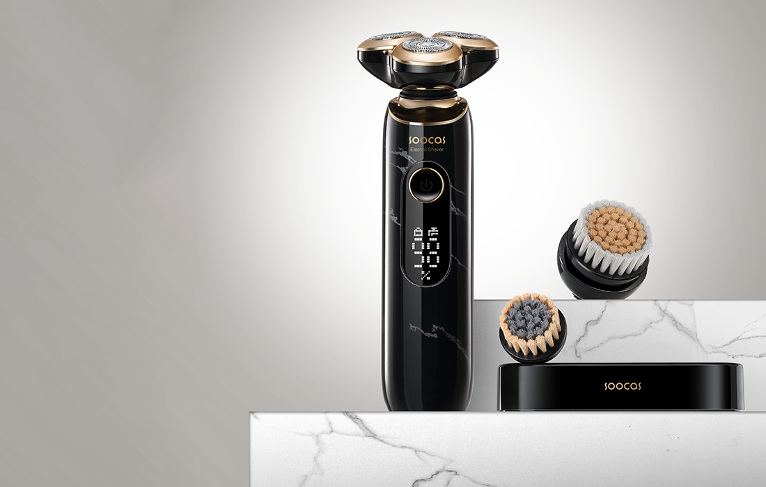 Akumulatorski električni brivnik Soocas S32 Z električnim brivnikom Soocas S32 lahko ne le zgladite ali obrijete brado, temveč tudi očistite obraz in se znebite ogrcev, kar omogočajo priložene izmenljive ščetke. Zaradi gibljivih glav in visokokakovostnih rezil naprava učinkovito odstranjuje tudi zelo kratke dlake, baterija z dolgo življenjsko dobo pa zagotavlja do 300 minut delovanja z enim polnjenjem. Brivnik se ponaša tudi z vodoodpornostjo IPX7, zato ga lahko uporabljate suhega ali mokrega.