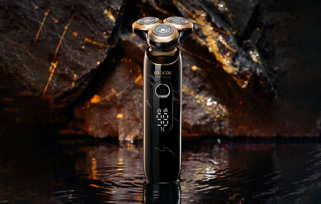 Lahek, priročen, eleganten Brivnik Soocas S32 je videti zelo dobro. Črna barva, zlati detajli in marmornata oblika dajejo izjemno eleganten videz. Poleg tega je izjemno lahek in kompakten – preprosto ga lahko pospravite v kovček, torbo ali nahrbtnik in ga vzamete s seboj na počitnice ali poslovna potovanja. Poleg tega funkcija potovalne ključavnice preprečuje, da bi brivnik med prevozom po nesreči sprožili.