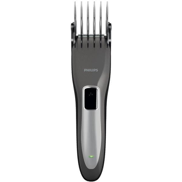 Strižnik las s 13 nastavitvami dolžine. Philips Series 3000 (HC3525/15) ponuja samostoječa rezila iz nerjavečega jekla s plastičnim pokrovom, ki jih je mogoče prati, širino rezalne enote 41 mm, možnost uporabe med polnjenjem in ergonomski ročaj.