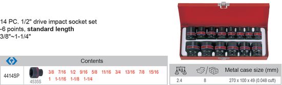 KOMPLET UDARNIH NASTAVKOV 1/2, 14-DELNI, KRATKI, 6-KOTNI – KY4414SP Celoten opis