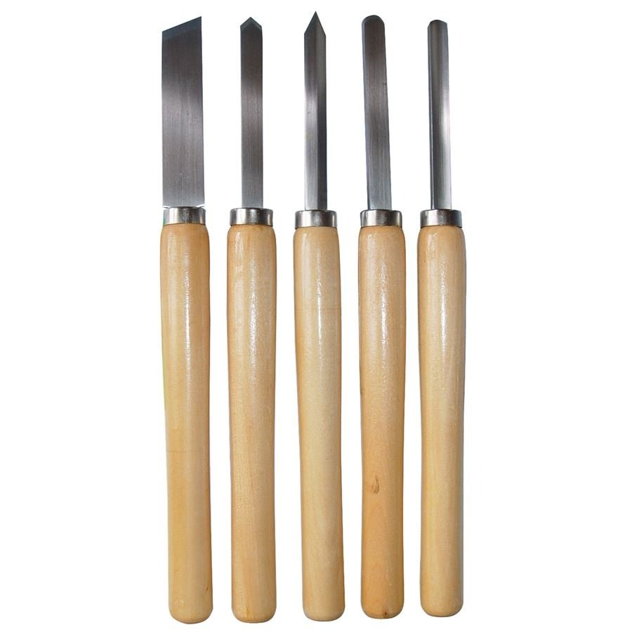 Komplet stružnih dlet, namenjenih za delo z lesom v domačih delavnicah, kočah, kočah itd. Konstrukcija: podolgovat lesen ročaj (→ dolžina: 245 mm), delovni jekleni del (→ dolžina: 100 mm), različne oblike rezila .. Celoten opis