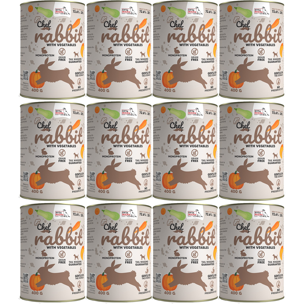 SYTA MICHA Mokra hrana Zajec z zelenjavo Mokra hrana za pse 12×400g