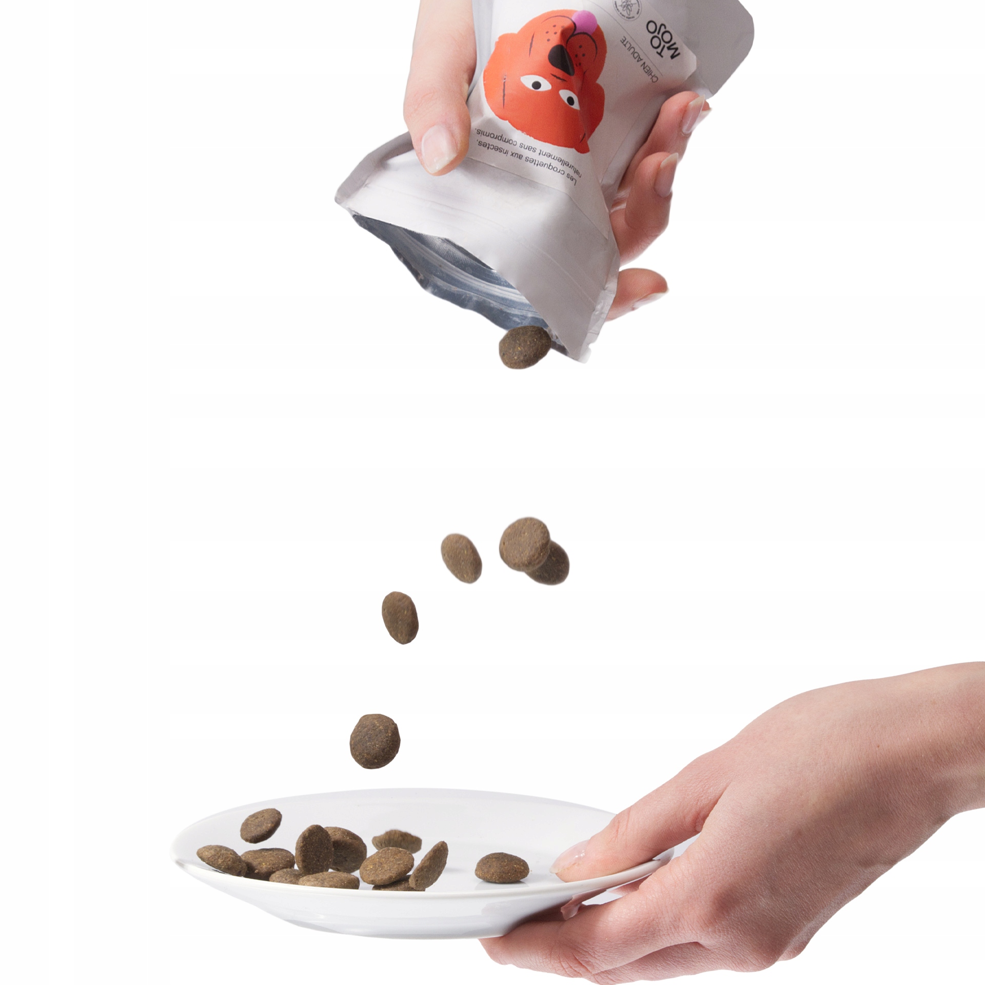 – zaradi Zaradi velikosti čipsa je hrana priporočljiva za odrasle živali (vendar pa lahko se daje psom od 6. meseca starosti), vendar se po zdrobljenju lahko uporabljajo tudi kot obrok za mladičke in mucke (v takšni situaciji je dobro, da se za pomoč pri določanju dnevnega odmerka obrnete na zdravnika ali dietetika),