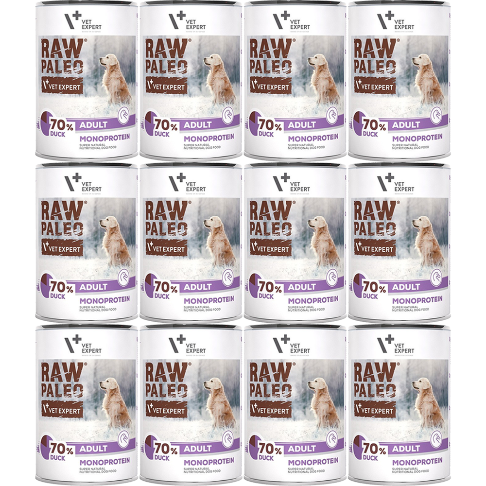 VetExpert Raw Paleo mokra hrana za odrasle pse z račjo mesom, pločevinka 12 × 400 g
