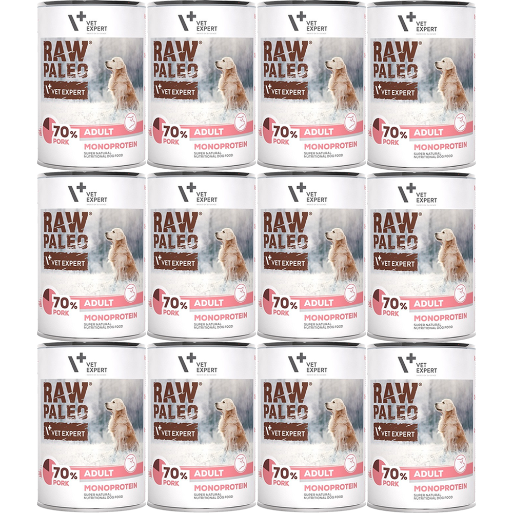 VetExpert surova paleo svinjina za odrasle, konzerva 12 × 400 g Celoten opis