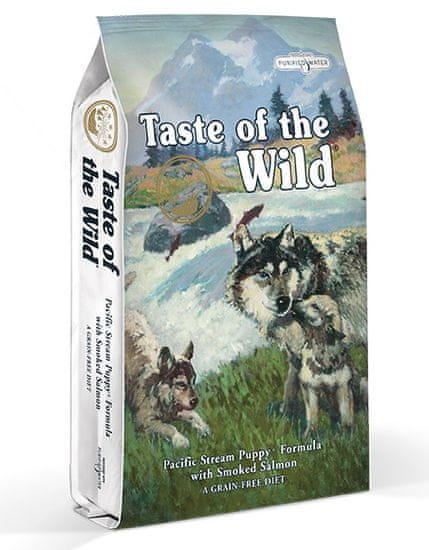 Taste of the Wild Pacific Stream Puppy briketi za pasje mladiče, prekajeni losos, 5,6 kg + Darilo WANPY pasji prigrizki, 100% naravni, piščančji, 150