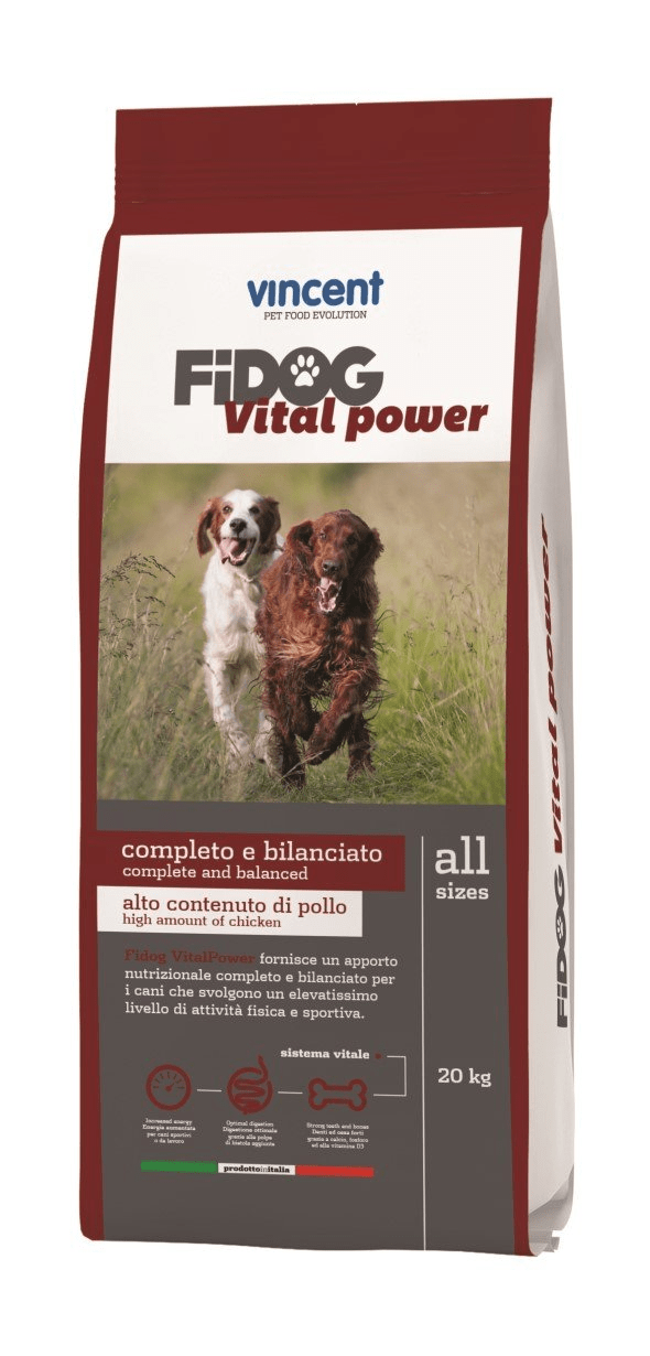 Vincent Fidog Vital Power prinaša popolno in uravnoteženo hrano za odrasle zelo aktivne športne in delovne pse. Primerna je za vse pasme od 1. do 7. leta starosti. Vincent hrana poskrbi za vse dnevne potrebe zelo aktivnih odraslih psov, saj zadovolji njihovo povečano potrebo po energiji. Visoka vsebnost beljakovin in maščob bo poskrbela, da bodo prejeli zadostno količino potrebnih hranil, medtem ko bo visoka vsebnost mesa in dodatek sušenega rožičevca poskrbela za urejeno prebavo, ustrezno absorpcijo hranil in splošno dobro počutje.