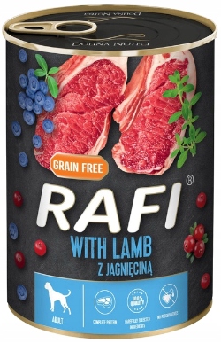Mokra hrana Rafi je zaradi uporabe jagnječjega mesa in sestavin živalskega izvora vir visokovrednih beljakovin, vitaminov skupine B in številnih dragocenih mikro- in makrohranil, ki zagotavljajo pravilno delovanje telesa odraslega psa. Maščobne kisline iz skupin n-3 in n-6 podpirajo naravno imunost in sodelujejo pri uravnavanju presnovnih procesov. Prav tako vlažijo, kar blagodejno vpliva na stanje kože in dlake.