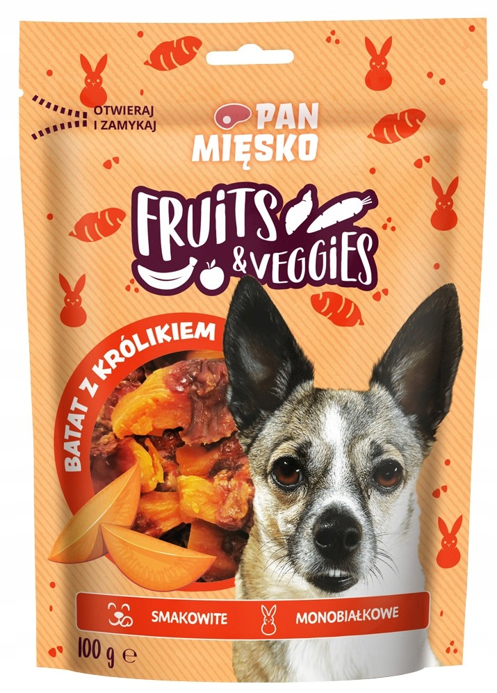 Mr. Mięsko SLADKI KROMPIR, ZAVIT V ZAJCA, priboljšek za pse 100g Fruits&Veggies
