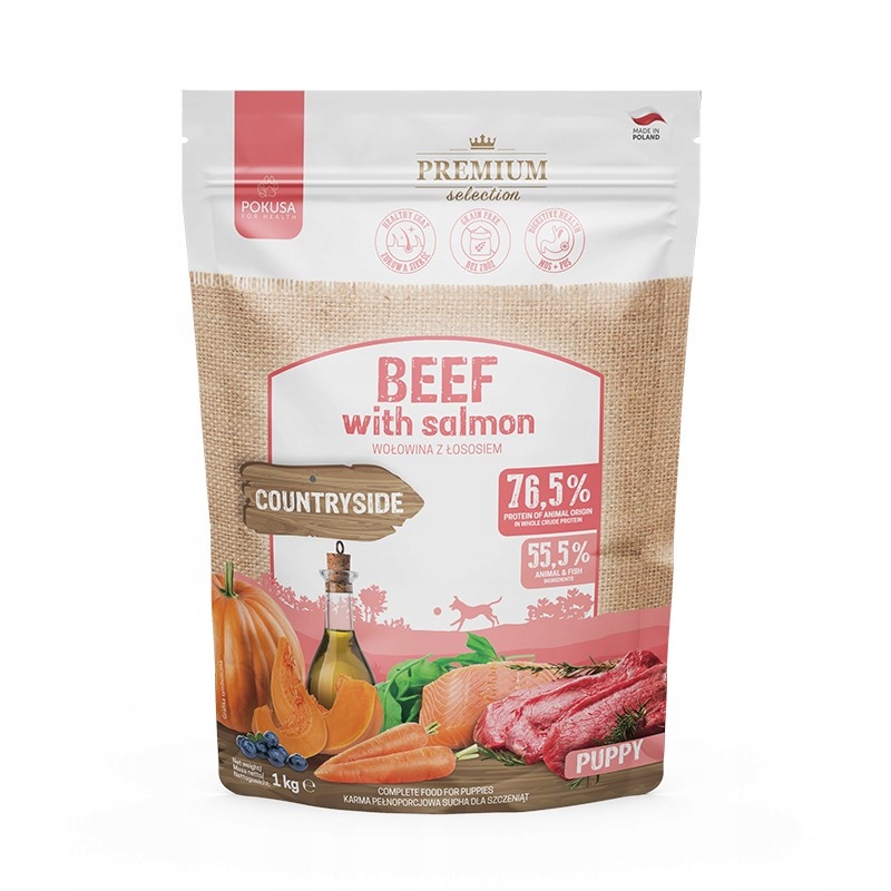 Premium Selection Swojskie Smaki – govedina brez žitaric z lososom za mladiče in mlade pse