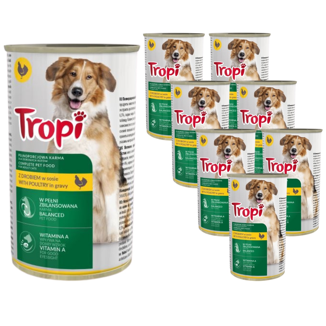 Set 8 kosov hrane 1250g TROPI za pse s perutnino v omaki.