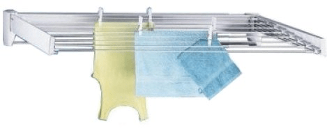 Eleganten kopalniški stenski sušilnik za perilo Telegant 70 je širok 70 cm, s katerim prihranite prostor. Ima % linij za obešanje v skupni dolžini 3,6 metra. Ima tudi ločen kromirani obešalnik za brisačo za roke. Idealen je za majhne prostore.