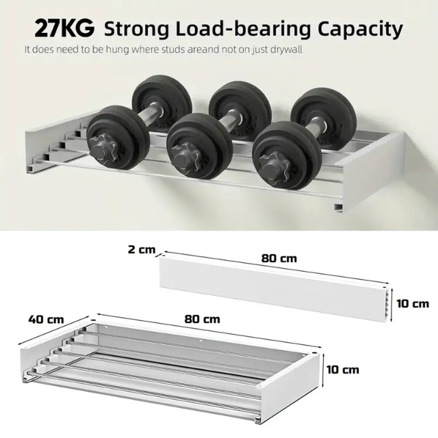 Izdelano je v celoti iz kovine, je trpežno, a lahko in omogoča, da brez težav obesite do 27 kg oblačil. Poleg tega se subtilno zloži ob steno in tako sprosti dragocen prostor na tleh.