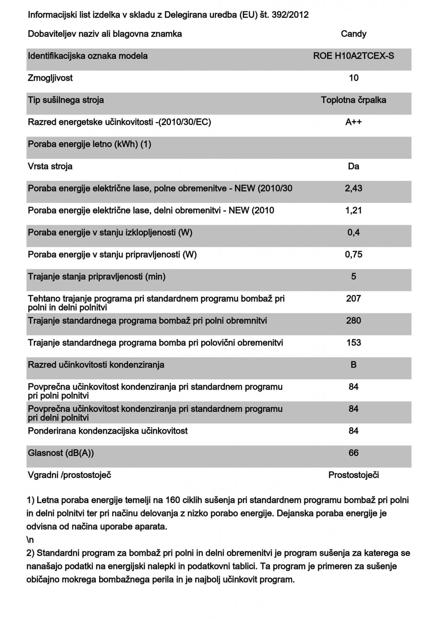 Candy ROE H10A2TCEX-S sušilni stroj