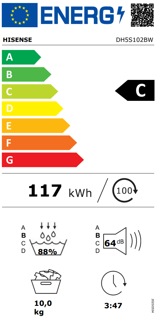 Hisense DH5S102BW sušilni stroj, 10 kg