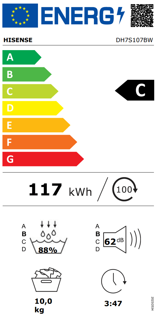 Hisense DH7S107BW sušilni stroj, 10 kg