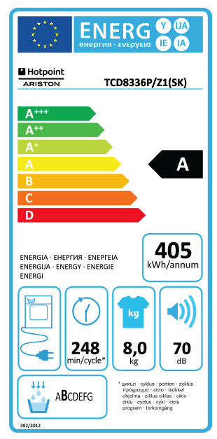 Sušilni stroj TCD 833 6P/Z1(SK) je kondenzacijski sušilni stroj s polnjenjem spredaj. Vanj lahko naložimo kar do 8 kilogramov perila. Spada v energijski razred A – 30 %, kar pomeni da porabi kar 30% manj električne energije, kot primerljiv pralni stroj energijskega razreda A.