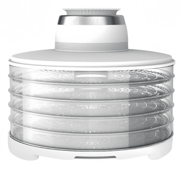 Zahvaljujoč 5 prostornim sušilnim pladnjem s premerom 32 cm ponuja veliko sušilno površino, termostat z nastavljivo temperaturo med 35 in 70 °C ter elektronski časovnik (1–48 ur) pa omogočata popoln nadzor nad procesom sušenja.