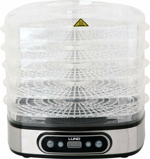 Električni sušilnik LUND je namenjen sušenju živil: sadja, zelenjave, gob, cvetja, zelišč, mesa in rib. Ohranja hranilne in okusne vrednosti živil ter jih hrani več mesecev. Zahvaljujoč vgrajenemu časovniku je mogoče programirati sušenje med 0,5 in 19,5 ure.