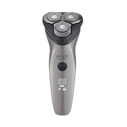 Adler Električni brivnik Adler AD 2945 s 3 glave, IPX7 vodoodporen, hitro polnjenje, LED prikaz in vgrajen trimer, črn/srebrn.