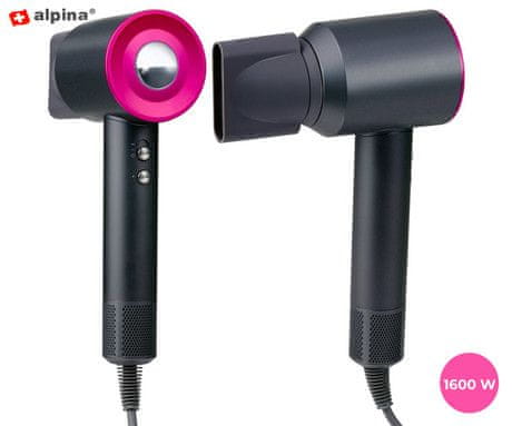 Sušilnik za lase ALPINA z močjo 1600 W omogoča hitro in enakomerno sušenje brez izsuševanja las, s prilagodljivimi nastavitvami za vsak tip las.