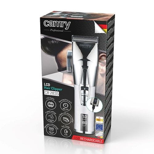 Camry Kamry Premium Hair Clipper CR 2835s, brezžični, srebrna barva, 8 nastavkov, LCD zaslon, ergonomična zasnova, 3h delovanja.