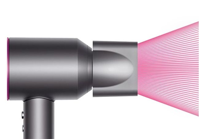 - Sušilnik za lase Dyson Supersonic ™ ima 4 nastavitve temperature, tri nastavitve pretoka zraka in izpuh hladnega zraka. Inženirji podjetja Dyson so izdelali tri natančne magnetne nastavke za dodaten nadzor pretoka zraka in doseganje različnih stilov pričesk. Nastavki ostanejo hladni na dotik. S tehnologijo »Heat Shield« (toplotni ščit) se vroč zrak zadržuje v »sendviču« hladnega zraka, tako da površina nastavkov ostane hladna. Ker so nastavki magnetni, jih je povsem enostavno namestiti in odstraniti. Obstaja več nastavitev, vključno s pihanjem hladnega zraka za fiksiranje pričeske.