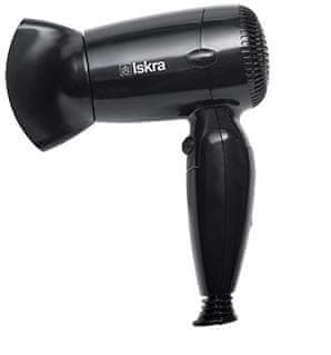 Iskra potovalni sušilnik las RH-1558–1BL ima 2 nastavitvi hitrosti in deluje z močjo 1000 W. Je majhen in zložljiv. Celoten opis