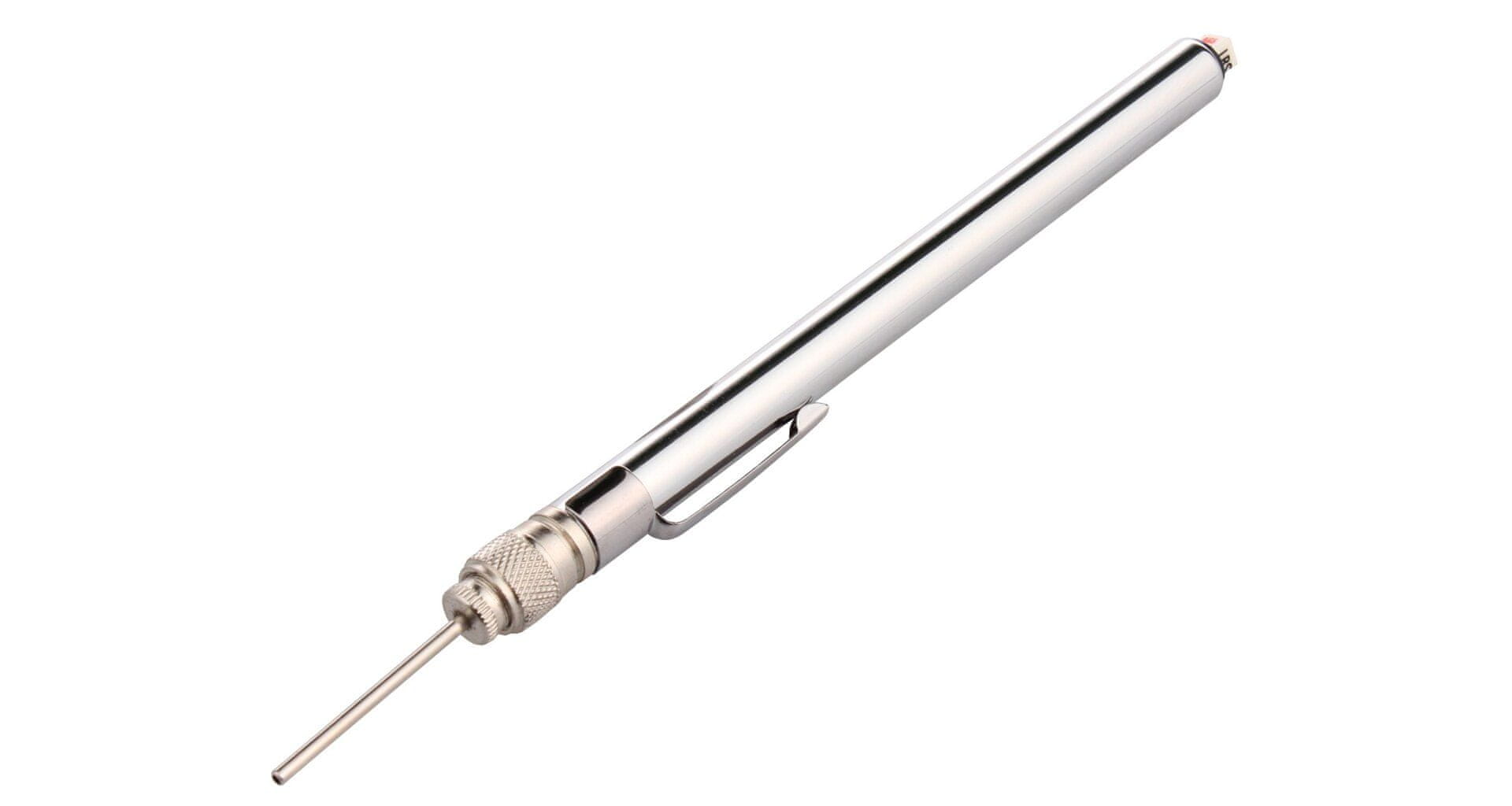 Merco Ball Pen je priročen, majhen merilnik tlaka v obliki svinčnika, ki omogoča enostavno ugotavljanje tlaka v žogi za nogomet, odbojko, košarko itd. Preprost merilnik tlaka žoge Ball Pen je izdelan iz kovine in meri od 1 do 20 LBS ali 0,1 do 1,4 BAR. Celotna dolžina manometra je 17,5 cm, premer 1 cm, priložena pa mu je igla. Opozorilo: Tlak kroglice vedno preverjajte le z navlaženo iglo, sicer obstaja nevarnost poškodbe kroglice!
