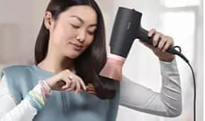 Nastavek učinkovito meša topel in hladen zrak, kar temperaturo zmanjša za 15 °C, vendar še vedno hitro posuši lase.