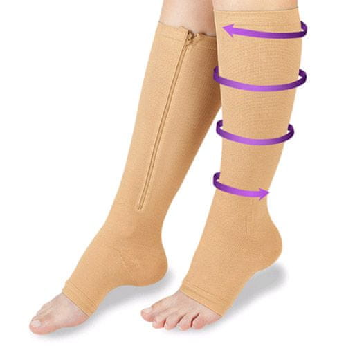 Inovativna zasnova ne zagotavlja le odlične opore nogam, temveč jih je zaradi praktične zadrge tudi enostavno oblačiti in sezuti. Naše nogavice do kolen, izdelane iz elastičnega in zračnega materiala (96 % najlon, 4 % elastan), bodo popolnoma ustrezale vašim vsakodnevnim potrebam.