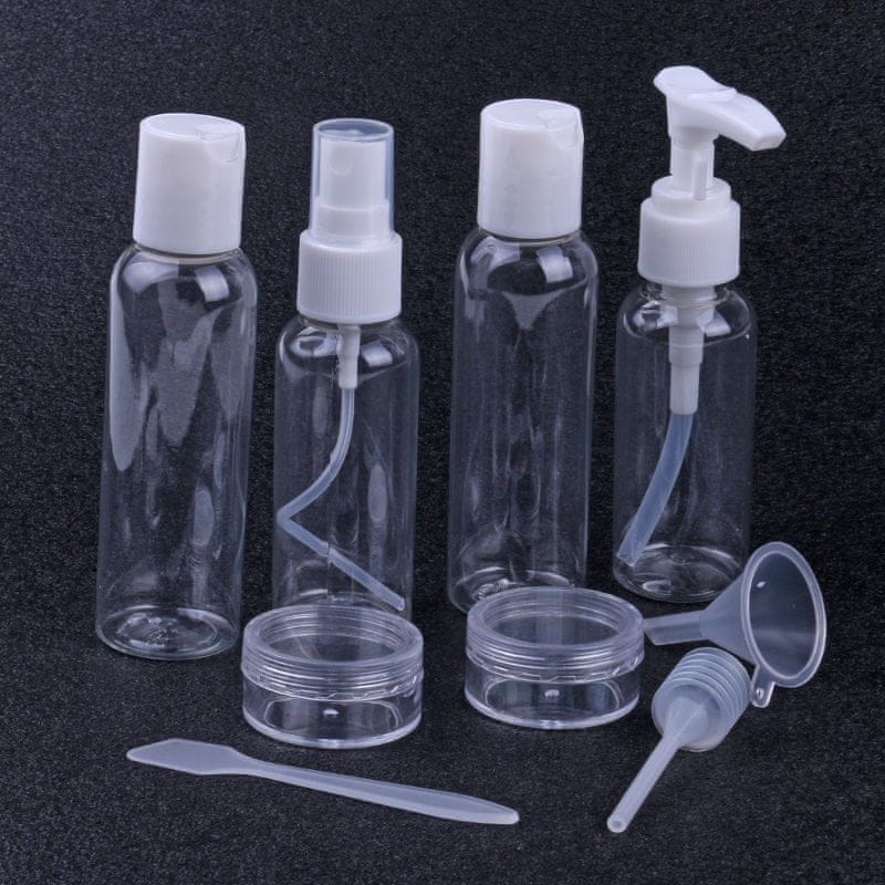 AG623 Komplet kozmetičnih posodic – 9 kosovKompaktni kozmetični set za potovanje, ki je idealen pri načrtovanju potovanja z letalom. Posodice za tekočine in kreme ustrezajo dovoljenim omejitvam prostornine, ki jih uporabljajo letalske družbe.Lastnosti izdelka:Tovarniški izdelek Celoten opis