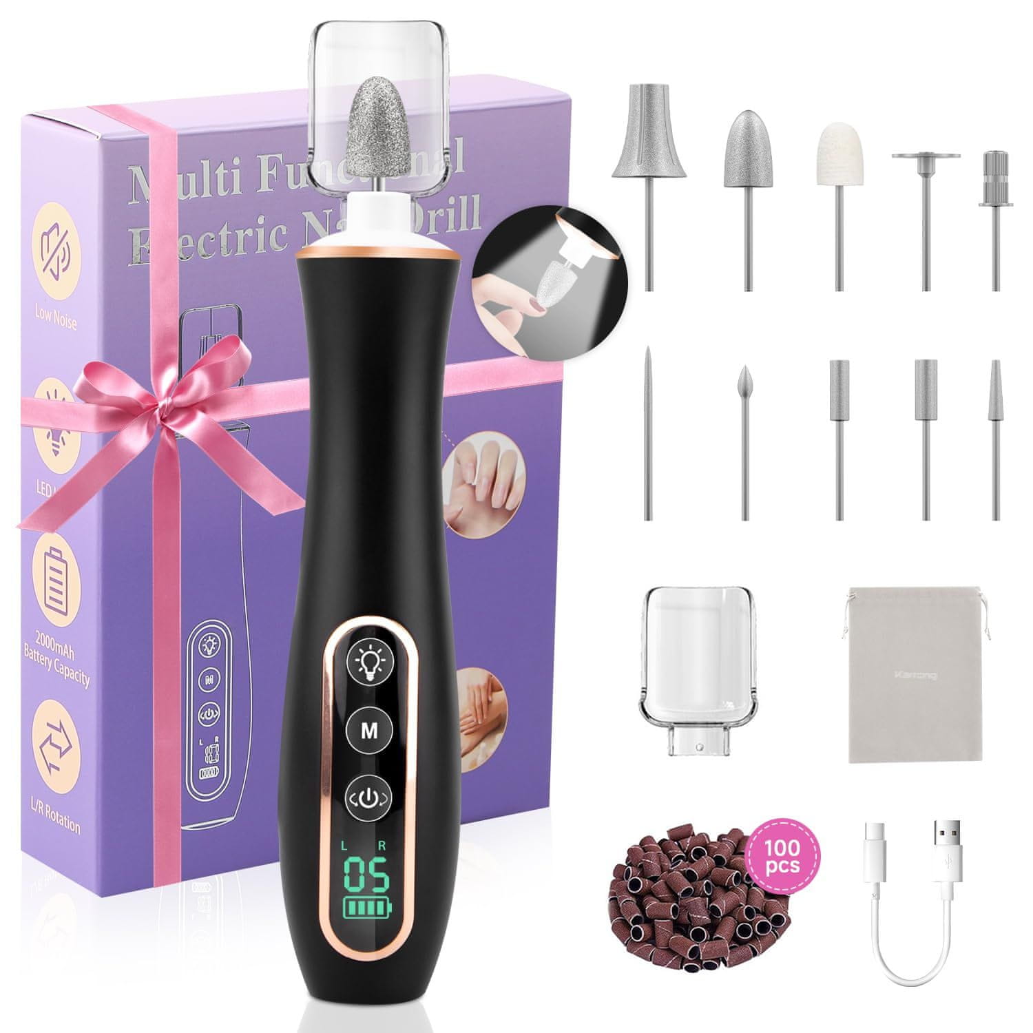 Karrong Maniküre Set Elektrisch je opremljen s 6 super svetlimi LED lučmi, ki zagotavljajo 360-stopinjsko osvetlitev brez mrtvih kotov za jasen pogled, nizko raven hrupa (