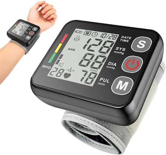 slomart Manšeta za merjenje krvnega tlaka na zapestju, popolnoma avtomatski, velik LED zaslon, zaznavanje aritmije, 2x99 spominskih mest, 13,5-21,5 cm