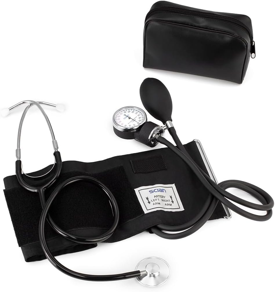 slomart Scian Manuelles merilnik krvnega tlaka, ročna manšeta za merjenje krvnega tlaka na roki s stetoskopom (črna-BK2)