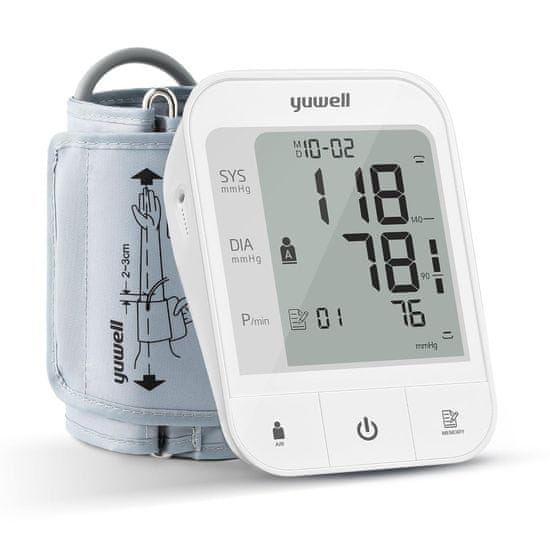 slomart yuwell YE670A merilec krvnega tlaka na nadlakti, 2 uporabnika, 2×74 spominov, velika manšeta 22–45 cm, 3,8" zaslon, USB/AA