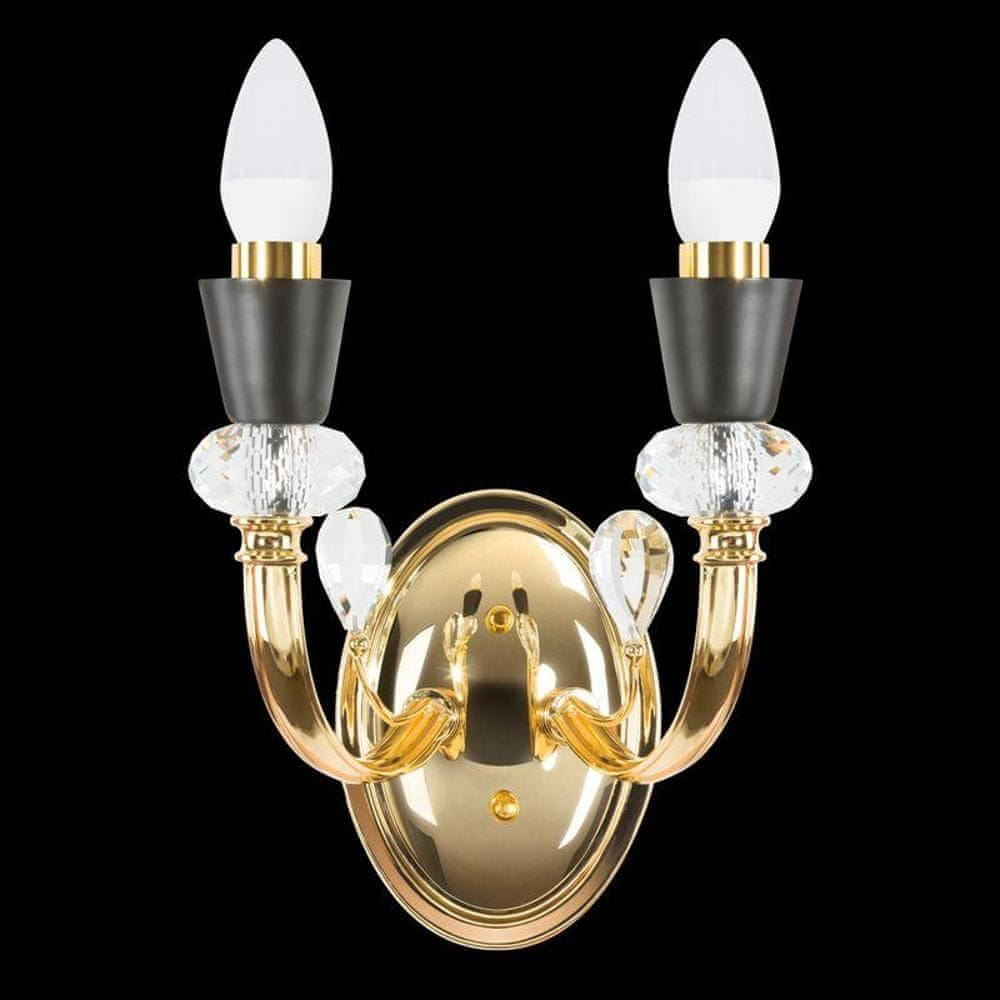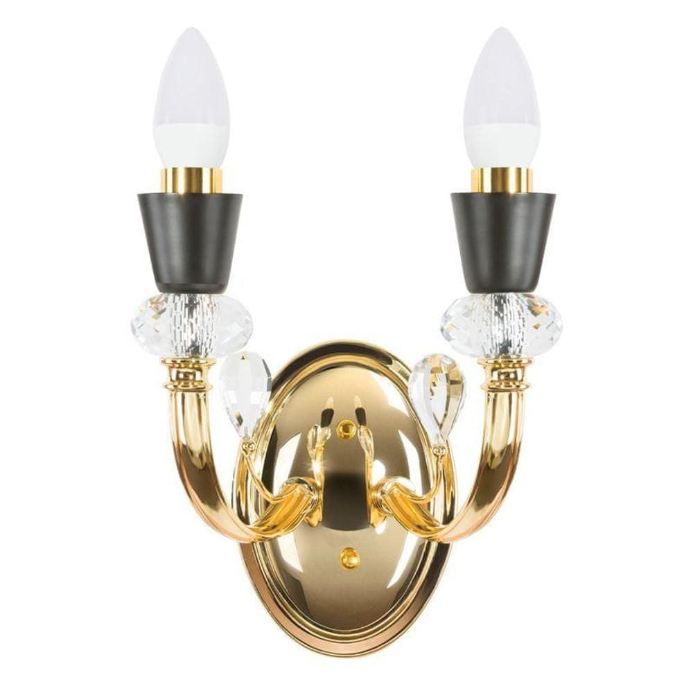 Dekorativna stenska svetilka širina: (fi) 9 cm, dolžina: 21 cm, barva: zlata/prozorna, sestava: železo+kristal k5 , napajanje: CE 220–240V 50Hz , žarnica: 2 X E14 MAX 40W , energijski razred: A-G Celoten opis