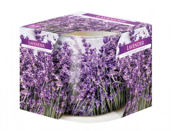 Dišeča sveča v steklu s privlačnim potiskom. Vonj: sivka. Čas gorenja: 20 ur. Teža polnila: 100 g. Višina: 7,2 cm, širina: 7,9 cm.