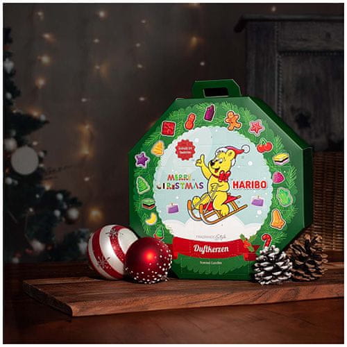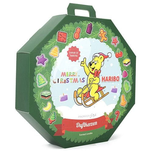 Haribo Adventní kalendář čajových svíček , 24 ks čajových svíček a svícen