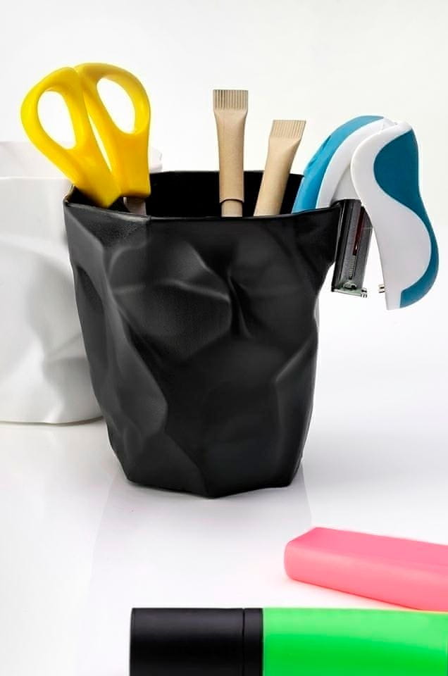 Plast Mini je oblikovalski organizator mize. V celoti je izdelan iz belega polipropilena. Oblika organizatorja spominja na zmečkan papir. Oblikovalska oblika, ki bo popolna doma ali v pisarni. Neto teža 1 izdelka: 0,2 kg Teža z embalažo: 0,5 kg Največje število kosov v paketu: 5 Dimenzije paketa: 34 Celoten opis