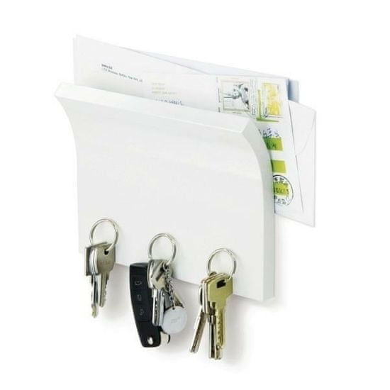 Umbra Magnetter – bela obešalnica za ključe in polica s črkami v enem: v obliki plošče, katere magnetna površina privlači obeske za ključe. Dovolj je, da pritisnete tipke, magnetizirana plošča pa jo bo privlačila in trdno držala. Brez kljuk, obešal ali štrlečih elementov – to je zelo priročen način Celoten opis