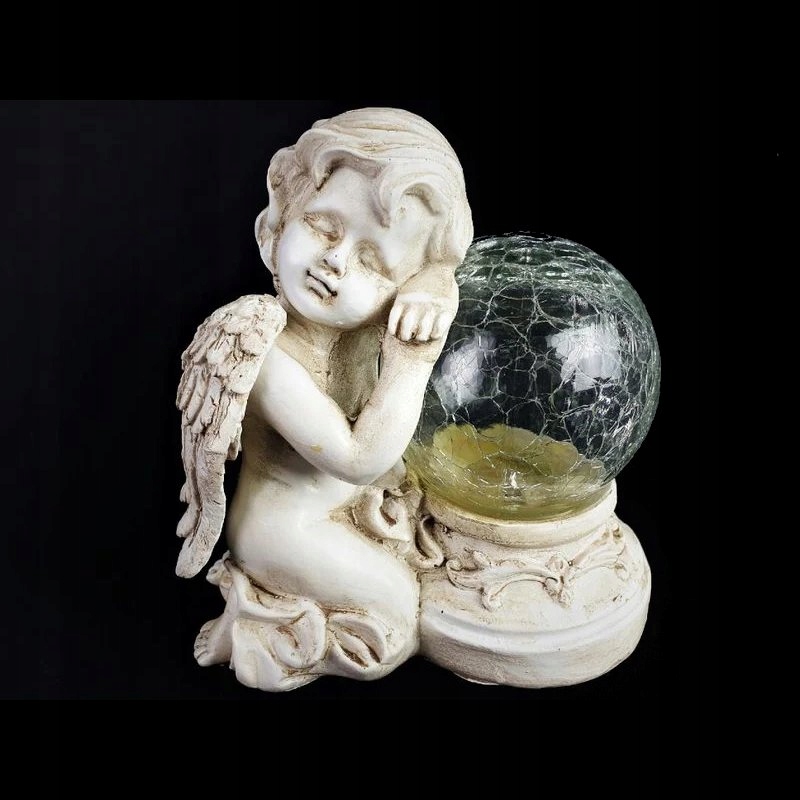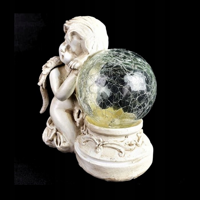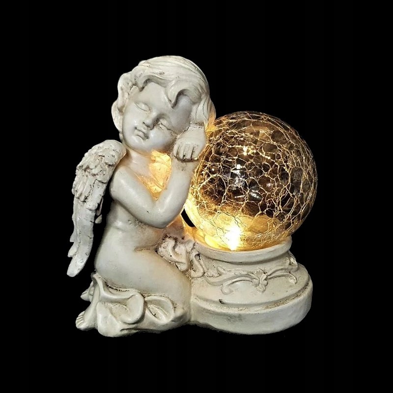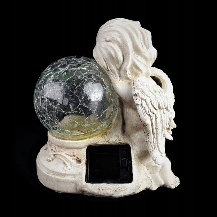 Sončna celica polni vgrajeno baterijo s sončno energijo, zaradi česar lahko angel sveti, ko se stemni