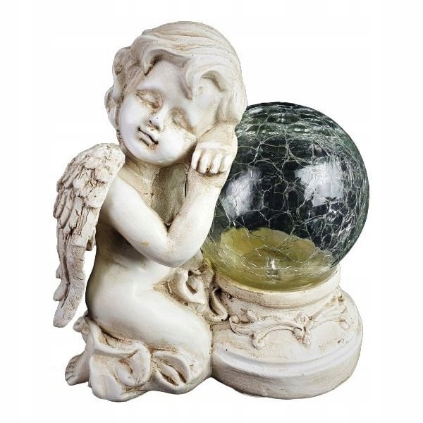 Figurica sedečega angela varuha iz sončne sveče za vrt ali grob Celoten opis