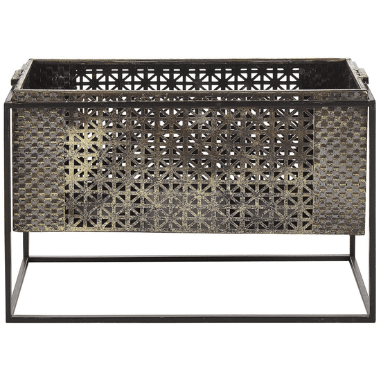 S tem edinstvenim svečnikom lahko okrasite jedilno mizo ali kamin. V celoti je izdelan iz trpežne kovine, sestavljen pa je iz črnega geometrijsko oblikovanega okvirja in zlate svetilke. Aroporna zasnova poskrbi za čudovito porazdelitev svetlobe sveč, kar v vašem prostoru ustvari toplo in prijetno vzdušje.