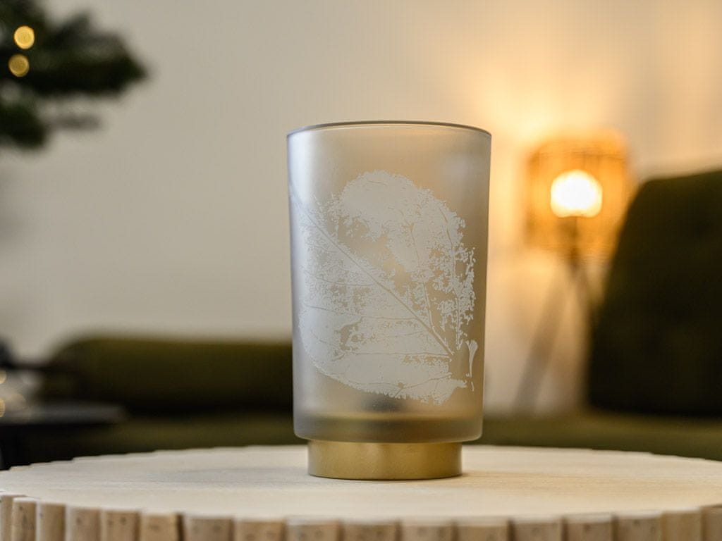 LED svetilka PINNY iz roza stekla bo zahvaljujoč nežnemu dizajnu in naravnemu vzorcu v vašo notranjost vnesla pridih elegance in harmonije. Ta 15 cm visoka svetilka je izdelana iz visokokakovostnega stekla in okrašena z drobnim tiskom listov, ki ustvarja mirno ter prijetno vzdušje. Celoten opis