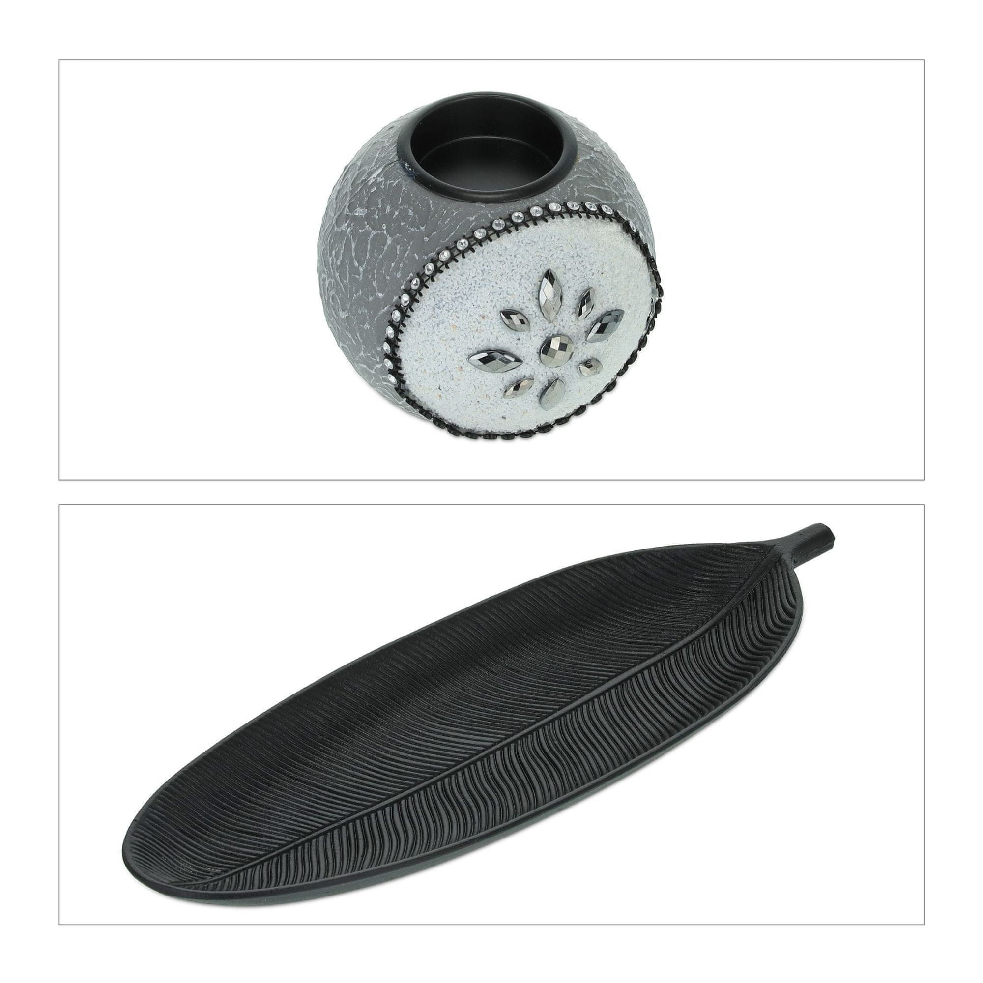 Northio Svečnik za čajne svečke kovina steklo 40x10 cm črn