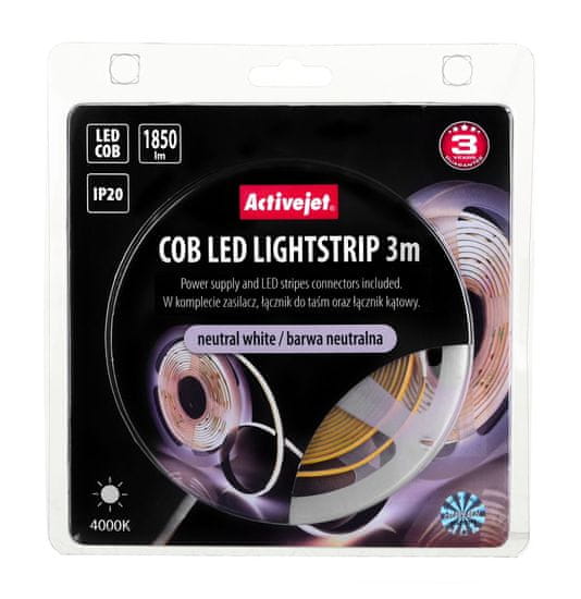 ActiveJet Aktivna LED trakasti svetlobni vir Activejet AJE-COB 3m, nevtralen bel, z univerzalno namestitvijo, IP20