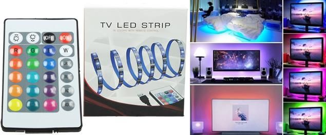 Najučinkovitejši in najpreprostejši način za ustvarjanje posredne osvetlitve za gledanje televizije je uporaba naših LED kompletov za televizorjem. Ti kompleti vsebujejo RGB trakove, ki lahko svetijo v kateri koli barvi, vključno z belo. Barvo in moč LED traku lahko enostavno izberete z daljinskim upravljalnikom, ki je priložen kompletu. RGB trak ima dovolj moči, da lahko služi tudi kot osvetlitev razpoloženja v ohišju. da trenutno ne gledaš televizije.